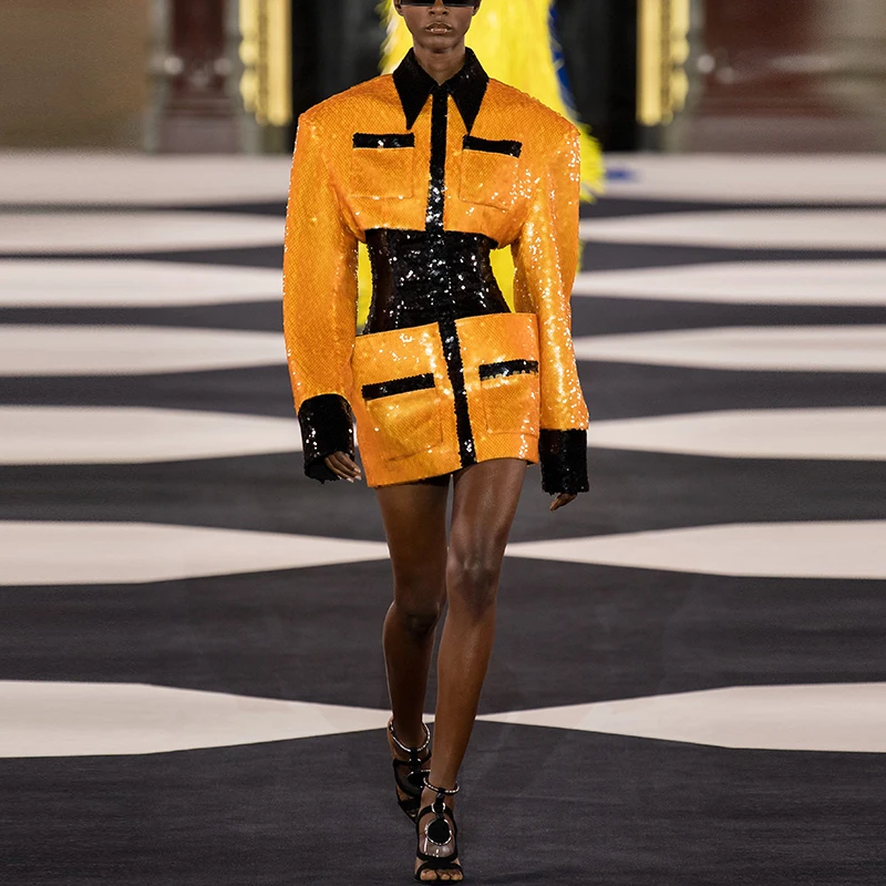 High Quality Newest Stylish 2021 Designer Runway Dress Women S Long Sleeve Color Block Pockets Glitter Sequined Dress Dresses Aliexpress